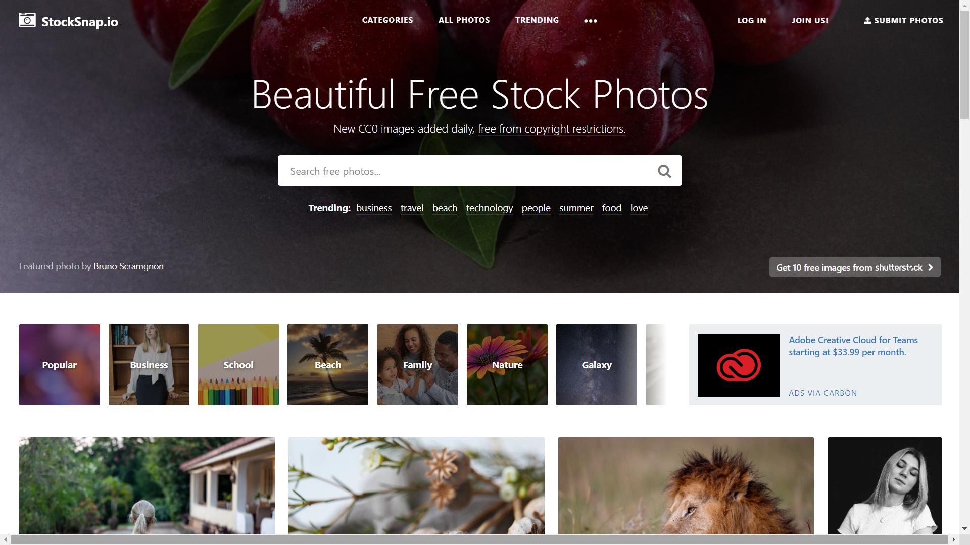 Stocksnap是由多位摄影师创办的一个免费图片分享网站,其图片全部由摄影师精挑细选,不会有任何的质量问题,作为一个开放的高清数码素材库,其图片资源同样是无版权、可以免费商用,并且可以按照下载量、收藏量、浏览量对于图片进行快速筛选,方便你找到自己想要的图片。