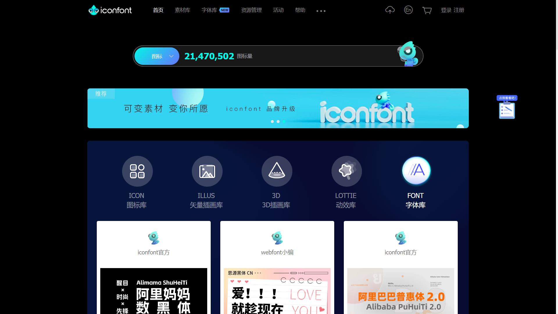 Iconfont是阿里巴巴旗下的矢量图标库,由于其采取了去中心化,大部分图标由用户自主上传,基本上所有图标的下载都是免费的。